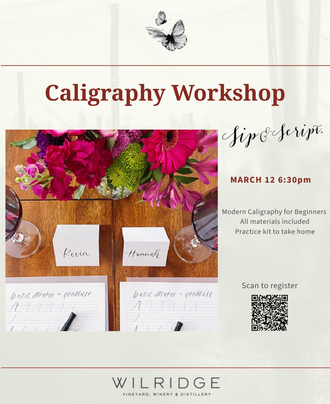 Join us at the Wilridge Pie Wine Bar in Woodinville for an evening of wine and modern calligraphy. Sip & Script will guide guests through the fundamentals of modern calligraphy in a relaxed and welcoming setting. This beginner-friendly workshop is perfect for anyone interested in learning the art of beautiful lettering. Your registration includes: • […]